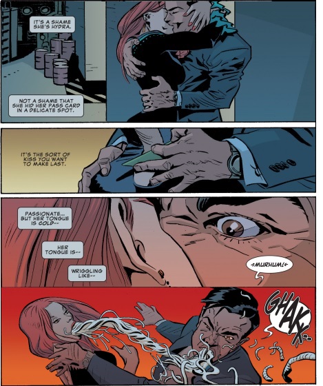 VD 12The Winter Soldier: The Bitter March #1 shows us why it’s not a good thing to get too touchy feely with the enemy.