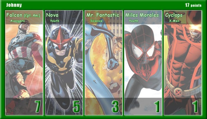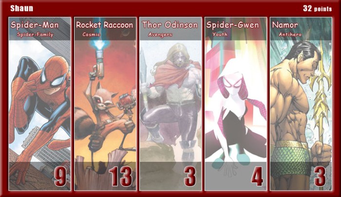 Final Score – Brian, 7 pts; Shaun, 6 pts; Johnny, 2 pts. The new season of the Fantasy Comic League will begin with the start of the All-New, All-Different Marvel in October 2015.