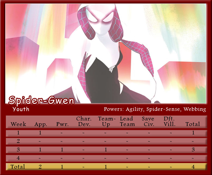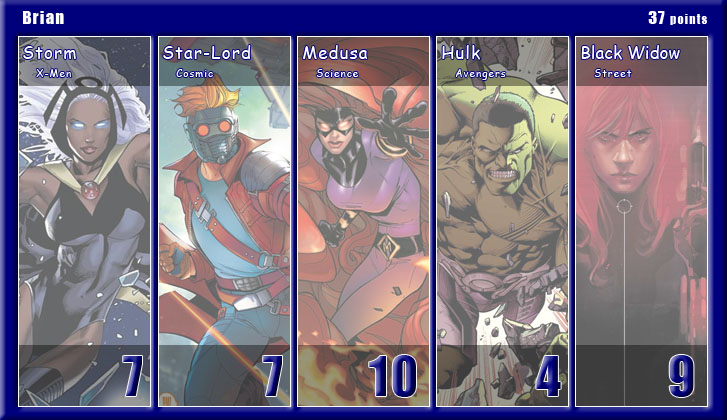 Before Secret Wars tore apart the Marvel Universe, Medusa made her debut in the Fantasy Comic League. The Inhuman Queen, her hair and her 10 points carried Brian to victory in the League Championship. Black Widow switched to the winning team, and Storm and Star-Lord continued to provide solid depth for Brian. Rocket Raccoon scored the most points for the month, while Spider-Gwen did not do as much for Shaun as he had hoped. Johnny finished the season with only two points in the overall scoring system, but Falcon finally received his new Captain America outfit on his stat card. So that is at least one victory for Johnny and his team. Make sure to follow along with Podcast Episode 52 – There Can Be Only Forty-Five for a full breakdown of points.