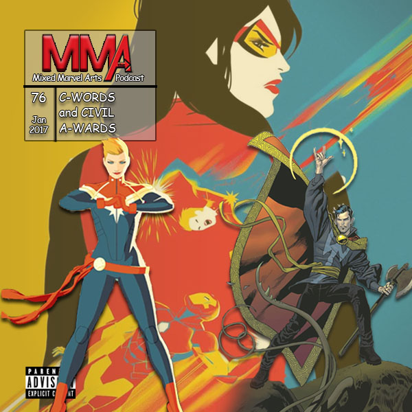 The Mixed Marvel Arts Podcast concludes communicating about 2016 by celebrating their most cherished Marvel content from the year! Conversely, Brian and Shaun are less content about Brian Michael Bendis’ character-driven, conclusion to Civil War 2, Carol’s actions in the comic concerned Brian, while Shaun championed the children’s curtailed role in all the calamity. The conclusion to the episode covers the hosts congratulating the 2016 winners of categories including “Favorite Character,” favorite creative teams and the crowd-influenced “Favorite Relationship.” Episode artwork: Spider-Woman, vol 6 #9 by Javier Rodriguez; Captain Marvel, vol 9 #1 by Kris Anka; Doctor Strange, vol 4 #1, variant cover by Kevin Nowlan.