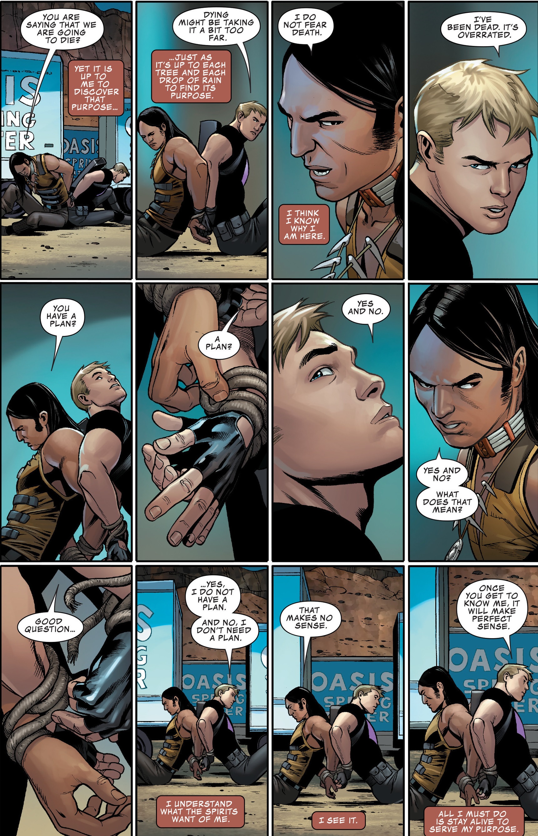 I Prefer Idealistically Misinformed: Occupy Avengers boasts a fictional story that is heavily steeped in real life occurrences. Walker chooses to focus on something that effects us all; water pollution. North America has a serious water crisis going on and the attention it deserves is just not there yet. While no secret water reservoir has been discovered on any Indigenous reserves, the cover story is all too real. Flint, Michigan is probably the most notorious case but it is the situation facing the Navajo that serves as the inspiration here. The extraction of uranium through mining has devastated water sources for communities in Arizona and New Mexico as far back as the 1950s and as recent as 2015 for Colorado. Water pollution goes much deeper than this, but Walker chooses to keep the focus simple for a two issue story (as to avoid beating the reader over the head with it.)