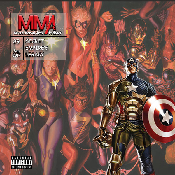 The Mixed Marvel Arts Podcast is not so great at keeping secrets Brian and Shaun spill all the details about Marvel’s most recent comic event, Secret Empire. Shaun has a lot to say about Nick Spencer’s capstone story to Hydra Steve Rogers and the impact the Generations one shots have on the Marvel legacy characters. Brian provides a quick review of Marvel vs. Capcom: Infinite, the next chapter in the popular fighting game series. In the end, the hosts review the Fantasy Comic League points for the month of September, the first month featuring four divisions. Lannette phones a friend in the beginning of the episode to discuss her options in the draft. Episode artwork: Promotional artwork for Marvel’s Generations event by Alex Ross; Cover artwork for Secret Empire: Omega, vol 1. #1 by Mark Brooks.