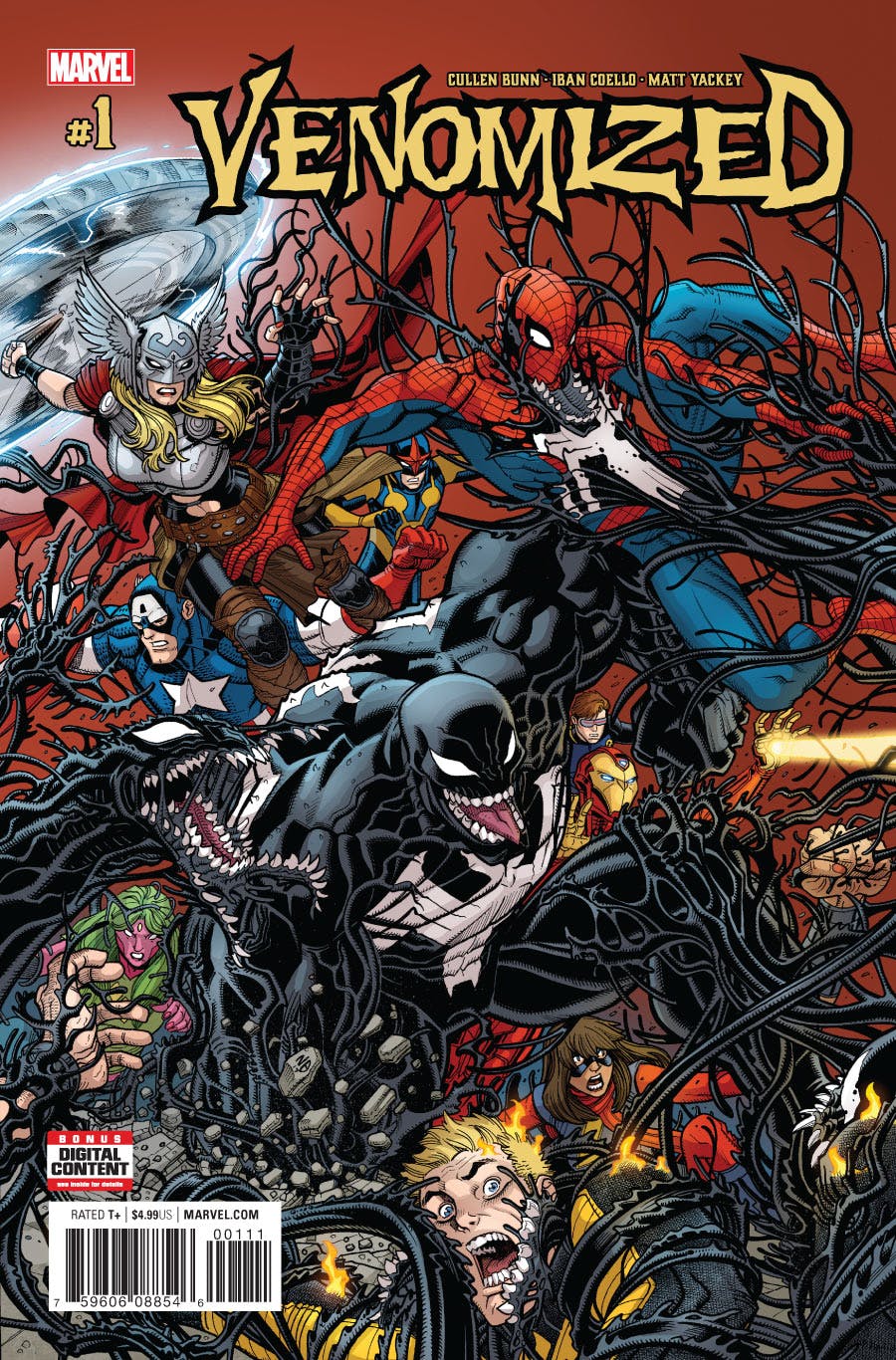 All the recent Venom mini-series culminate in the month of April in Venomized, which picks up where the recent X-Men Blue team-up event ended. The Poisions are coming for the entire Marvel Universe. Which Marvel heroes will be next to merge with a symbiote? Appearance estimates center around Venom, the X-Men Blue team, and any hero who shows up on the solicited cover.
